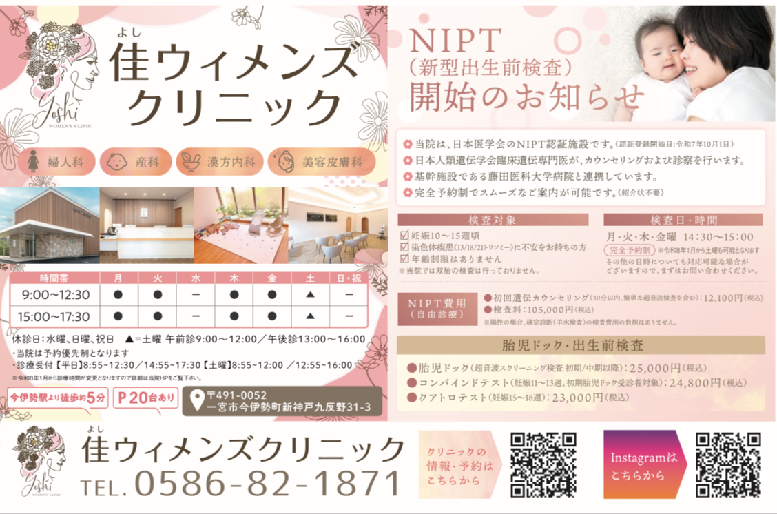 掲載内容は、当院で新たに開始した NIPT(新型出生前検査) についてのご案内です。